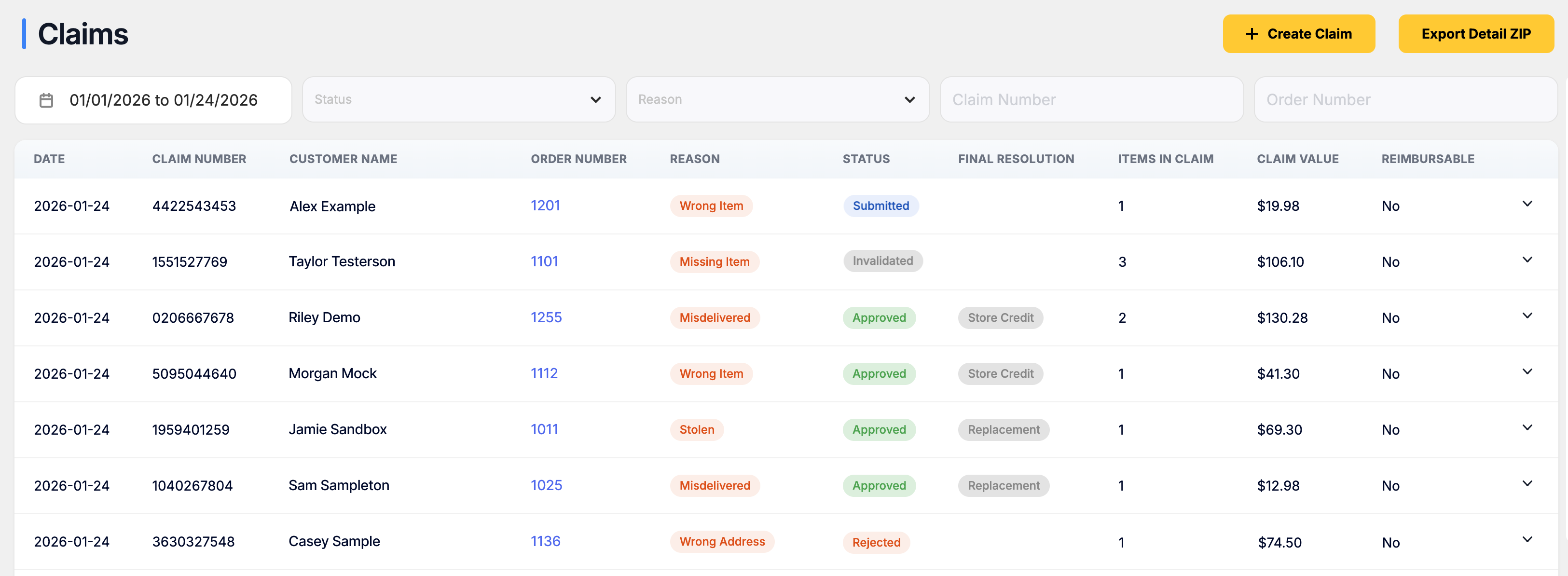 The Claims Dashboard allows you to view and manage all customer claims related to shipment issues such as missing items, damaged products, lost packages, or incorrect items.
